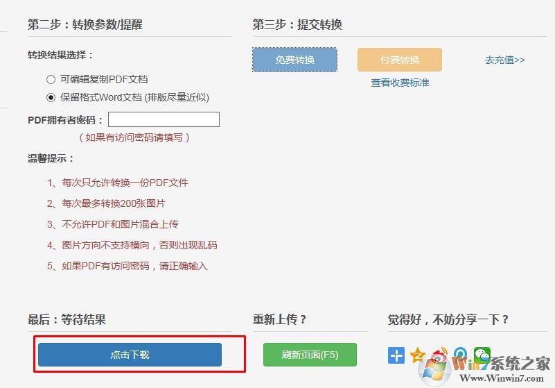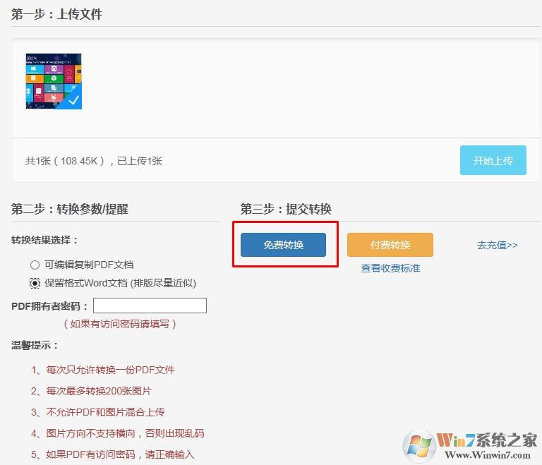2、選擇保留格式的Word,然后點擊免費轉(zhuǎn)換m.cncxm.com 系統(tǒng)之家