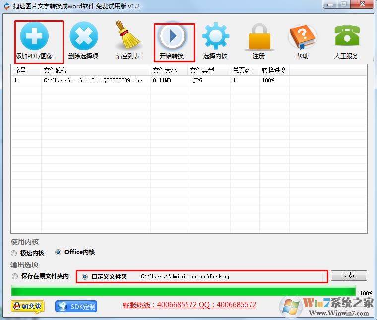 2、安裝之后添加圖像,把要轉(zhuǎn)換的圖片添加上,然后選擇Office內(nèi)核(需要有安裝office),然后點擊開始轉(zhuǎn)換;