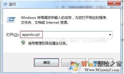 1、WIN+R,在“運(yùn)行”窗口中,鍵入 appwiz.cpl,然后單擊“確定”