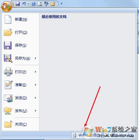 1、點(diǎn)擊左上角的主圖標(biāo),然后選擇Word選項(xiàng),如下圖;
