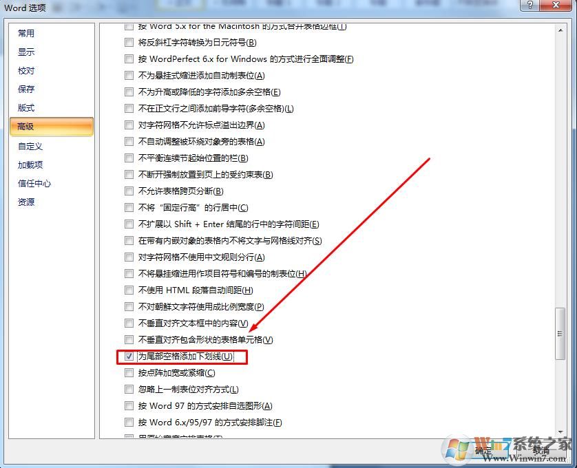 3、在版式選項(xiàng)中,找到“為尾部空格添加下劃線(U)”選項(xiàng),勾選,然后確定;