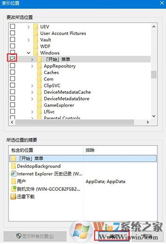 5、最后在索引位置窗口中會(huì)顯示出目錄樹(shù),這些目錄樹(shù)可供選擇,在想添加的位置前面打鉤即可,然后點(diǎn)擊確定保存退出。如圖: