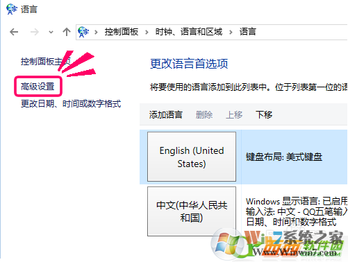 3、在日期,時(shí)間和區(qū)域設(shè)置的左邊有三個(gè)選項(xiàng),點(diǎn)擊選擇[高級(jí)設(shè)置]m.cncxm.com
