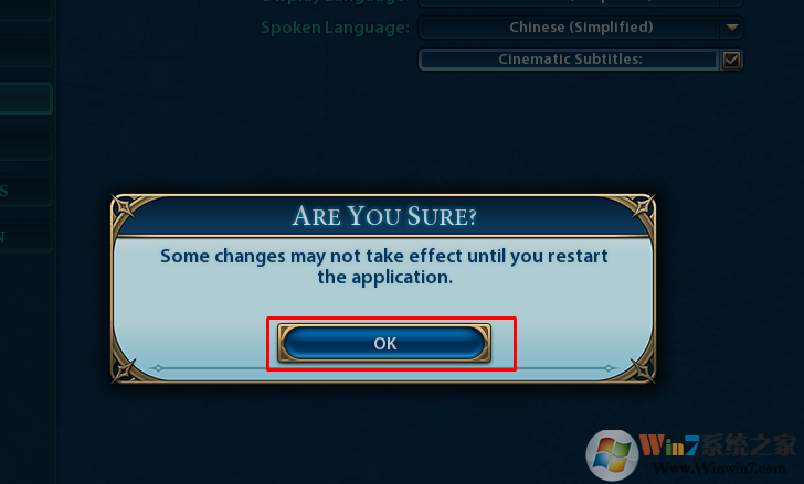 4、最后會(huì)給出提示“所有設(shè)置會(huì)在游戲重啟后發(fā)生改變”,我們點(diǎn)擊確定即可。