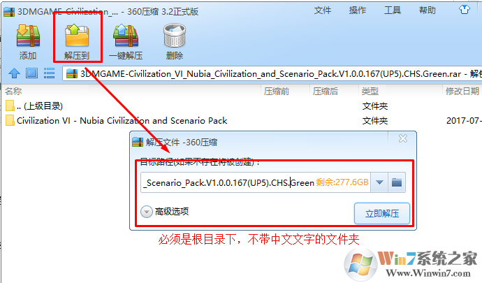2、下載完成后,解壓到任何盤的根目錄下,不然游戲時(shí)無(wú)法啟動(dòng)的。