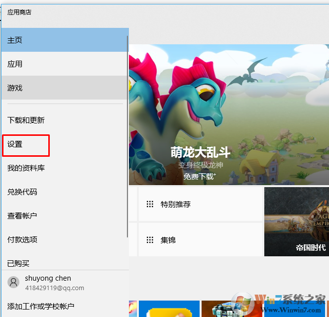 2、選擇彈出列表里的設(shè)置,如圖所示: