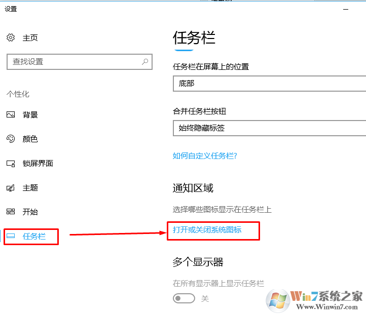 2、下拉在通知區(qū)域選擇打開和關(guān)閉系統(tǒng)圖標(biāo)。
