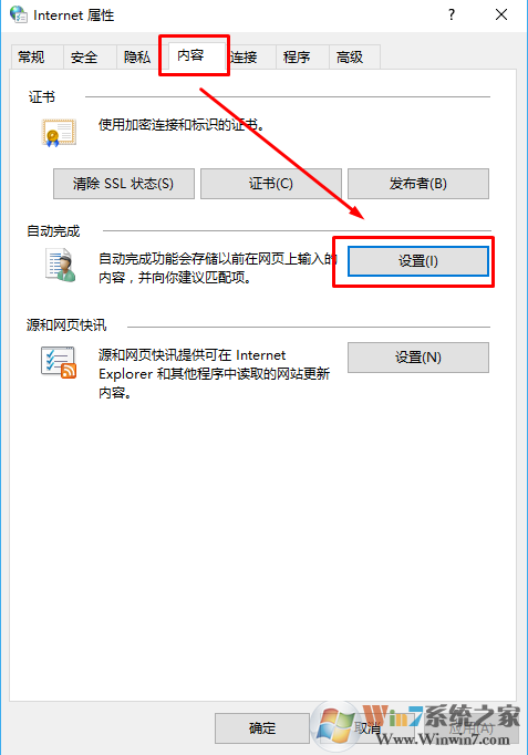 2、切換到內(nèi)容選項卡。在自動完成下選擇設(shè)置。