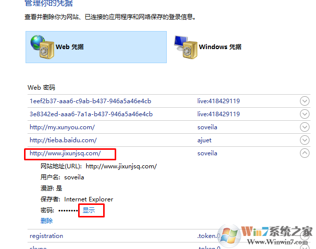 4、選擇自己需要查看密碼的網(wǎng)頁。點擊顯示密碼。