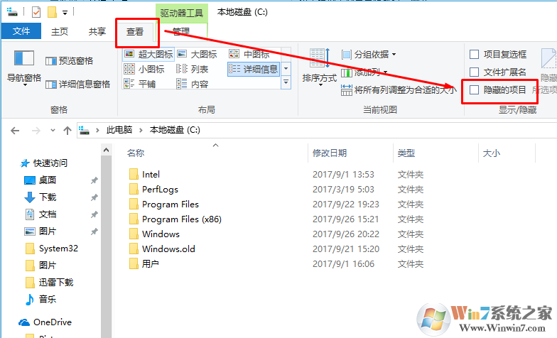 3、在功能區(qū)去換到查看欄,然后勾選隱藏的文件即可。