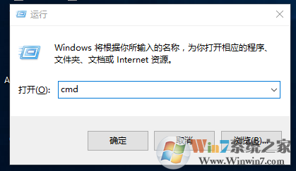 2、在彈出的運(yùn)行窗口中,輸入“cmd”,并且點(diǎn)擊確定,如下圖所示