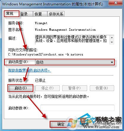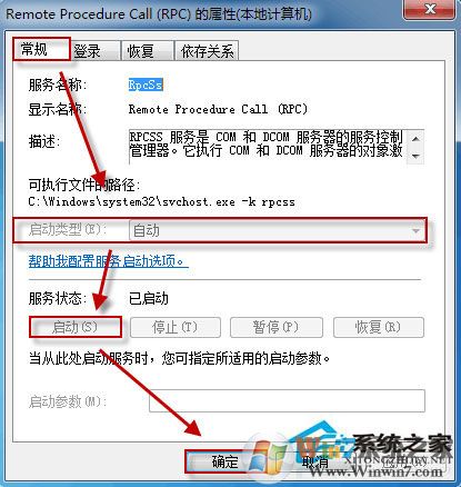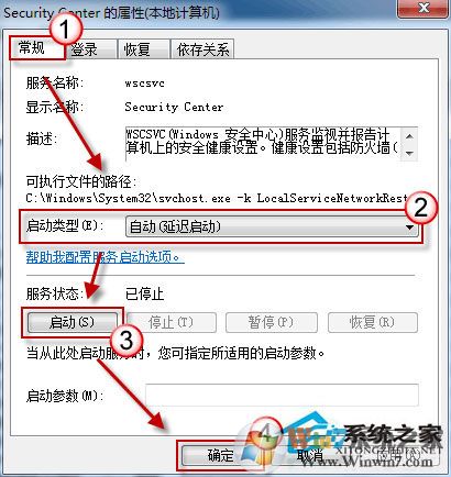 4.在“常規(guī)”選項卡中,選擇“啟動類型”為“自動”,然后點擊“服務(wù)狀態(tài)”下的“啟動”按鈕現(xiàn)在,請確認(rèn)一下此服務(wù)是否可以啟動?