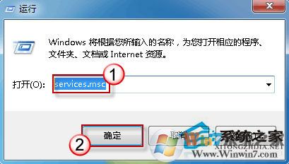 1.使用組合鍵“Win+R”調(diào)出運行命令框,鍵入命令services.msc,回車。