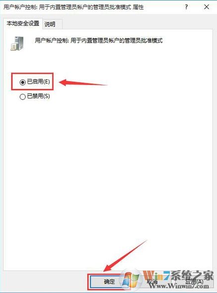 3、把本地安全設(shè)置改為“已啟用”,點(diǎn)擊“確定”,重啟電腦即可。如圖所示: