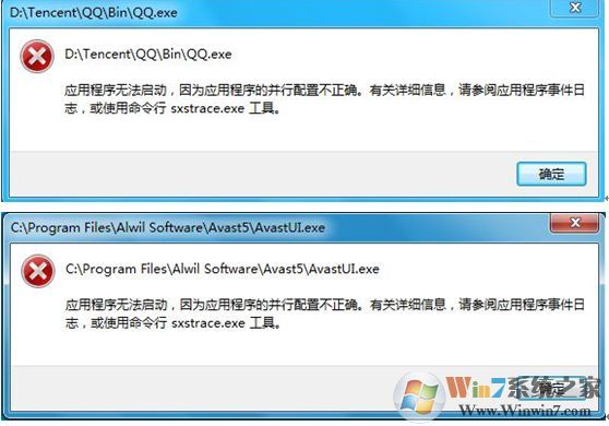 啟動(dòng)QQ2010、Avast等軟件的時(shí)候報(bào)錯(cuò)“應(yīng)用程序無(wú)法啟動(dòng),因?yàn)閼?yīng)用程序的并行配置不正確。有關(guān)詳細(xì)信息,請(qǐng)參閱應(yīng)用程序事件日志,或使用命令行sxstrace.exe工具。”,恢復(fù)系統(tǒng)無(wú)效,安裝Microsoft Visual C++ 2005無(wú)效,具體見下圖: