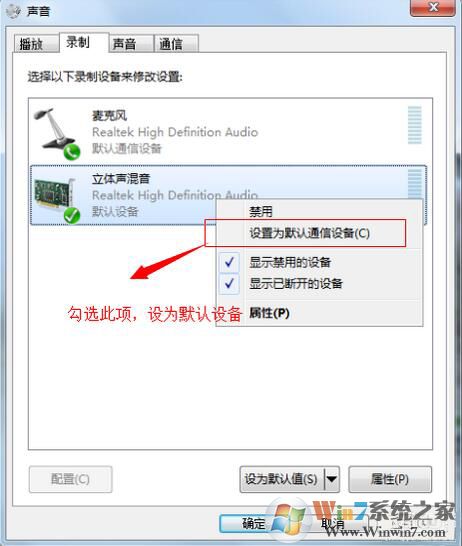 在里邊把“立體聲混音”右鍵啟用并設(shè)置為默認(rèn)。