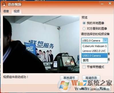 4、進入視頻設置首先看到的是我的本地圖像,您可以查看視頻設備,比如我這現(xiàn)在看到的有四個選項.聯(lián)想筆記本一體機大多數(shù)都自帶攝像頭,帶Youcam軟件的將會有第一個選項,其中你可以選擇的攝像頭有兩個,一個是本機自帶,一個是USB攝像頭。選中以后將會看到本地圖像;