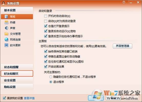 2、登錄成功后,點擊左下角主菜單,依次點擊,系統(tǒng)設置,好友和聊天,單擊進入;