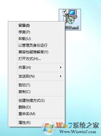 這時(shí),7-zip.msi安裝包右鍵菜單中出現(xiàn)了“以管理員身份運(yùn)行”的功能,即可調(diào)用管理員賬戶權(quán)限進(jìn)行運(yùn)行。