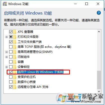 3、勾選適用于Linux的Windows子系統(tǒng)