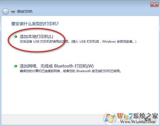 4、點(diǎn)擊“添加本地打印機(jī)”;