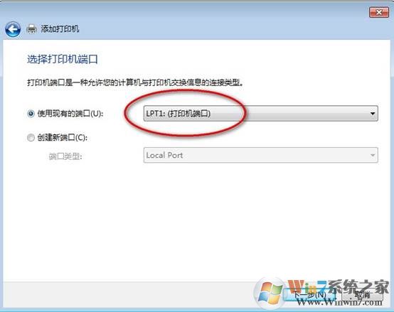 5、使用現(xiàn)有的端口,選擇USB端口或并口;