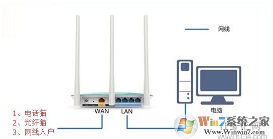 在華為無線路由器通電的情況下,用一根網(wǎng)線來連接路由器上的任意一個LAN(1/2/3/4)接口與計算機,用另一根網(wǎng)線連接ADSL Modem(貓)或者光纖貓與路由器WAN口。如果大家的寬帶接入方式直接是入戶網(wǎng)線,那么這樣的網(wǎng)線直接與路由器的WAN口相連接。