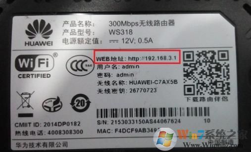 注意:不同的華為路由器型號入設(shè)置界面的IP可能會有所不同,建議查看路由器底部: