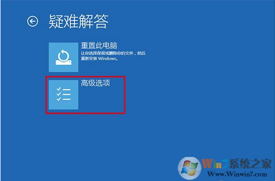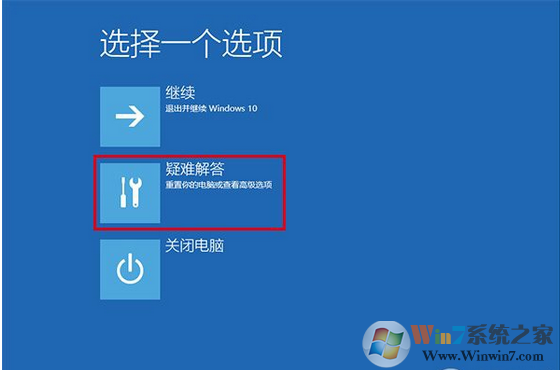 3、重啟后,進入第一個選擇畫面,點擊“疑難解答”;