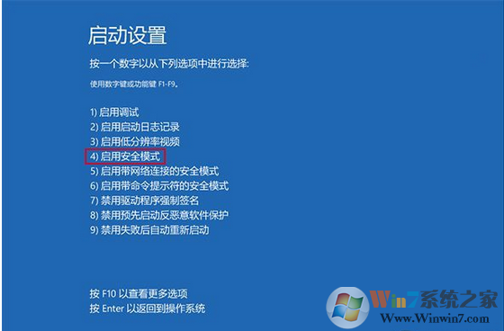 7、重啟后停留在選擇畫面,按鍵盤“4”或者“F4”鍵進入安全模式;