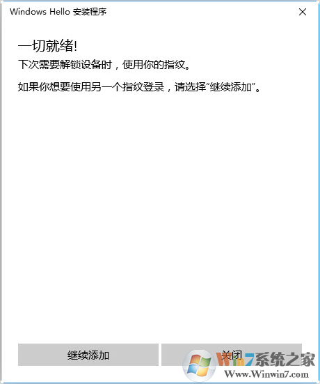 10、指紋添加完成,可以繼續(xù)添加或關(guān)閉;
