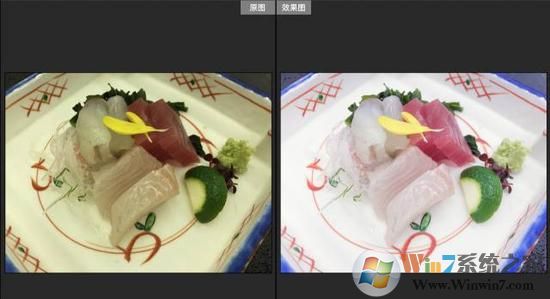選擇界面左上方工具欄中的白平衡工具——形狀是一個滴管。然后在畫面的白色處,比如盤子上單擊點(diǎn)選,軟件會根據(jù)此處為基準(zhǔn)來校準(zhǔn)色溫,你會看到照片的顏色會發(fā)生變化。