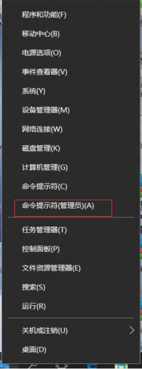 方法一:右擊開始菜單,選命令提示符(管理員)