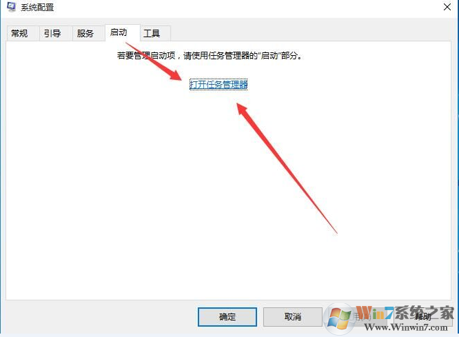 3、點擊‘啟動’標(biāo)簽卡,點擊‘打開任務(wù)管理器’,禁用全部啟動項;