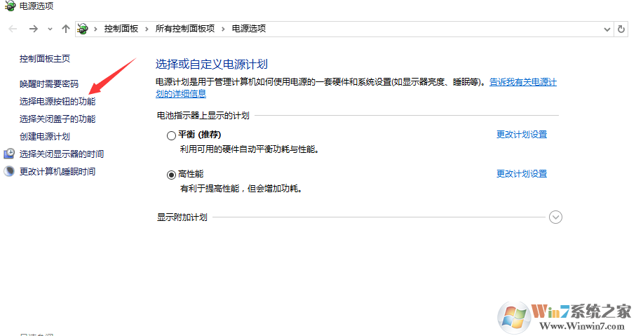 2、點擊‘選擇電源按鈕的功能’,點擊“更改當(dāng)前不可用的設(shè)置”;