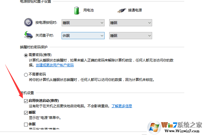 3、取消“啟用快速啟動”功能,設(shè)置完成后重啟計算機。