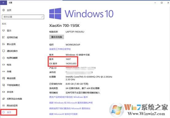 依次點擊“開始菜單——設(shè)置——系統(tǒng)——關(guān)于”: