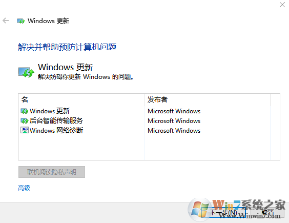 win10系統(tǒng)可以直接進入到更新頁面選擇疑難解答,讓系統(tǒng)自動的為我們修復(fù)更新問題以及相關(guān)的網(wǎng)絡(luò)問題。
