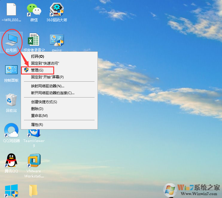 1、開啟電腦后,找到“我的電腦”或者“這電腦”點右鍵,點擊“管理”打開“計算機管理”;