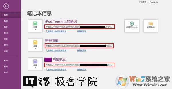 在OneNote 2016中,點擊Robbin功能區(qū)中的文件-信息,你將在此看到你所有的OneNote筆記,在這些筆記的下方,你可以看到它們對應的鏈接。