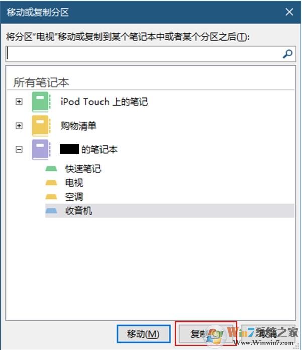 在接下來彈出的窗口中,選擇你的目標位置,然后點擊復制按鈕,你將看到一份該筆記分區(qū)的拷貝。