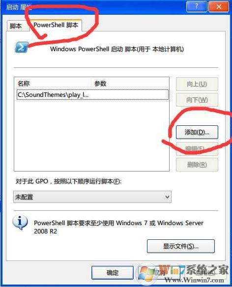 9. 雙擊啟動,關(guān)機(jī)同理,選擇“Powershell 腳本”選項(xiàng)卡,選擇添加