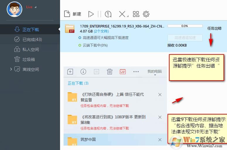 附上解決迅雷9及迅雷極速版任何資源下載任務(wù)出錯、內(nèi)容違規(guī)問題: