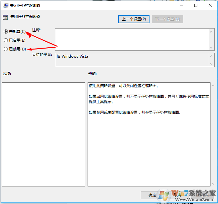 4、在右側(cè)雙擊打開【關(guān)閉任務(wù)欄縮略圖】;