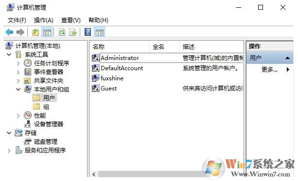 2、在左側(cè)依次展開:“計算機管理-本地用戶和組-用戶”;