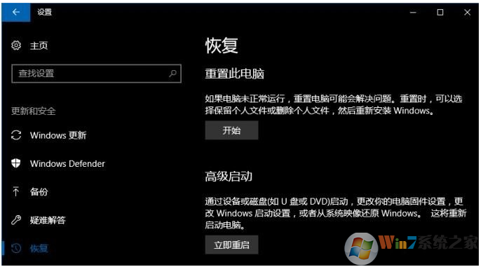 1、按住Shift后點擊“重啟”,進入“高級啟動”選項(設(shè)置-更新和安全-恢復(fù)也可以進入);
