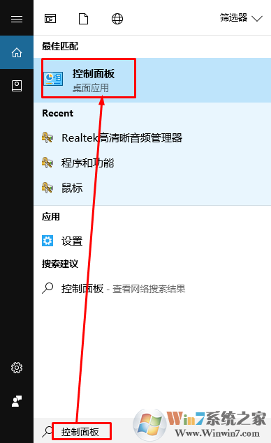 1、在小娜搜索控制面板,選擇打開(kāi)【控制面板】;
