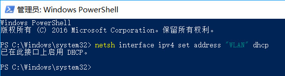 命令1:netsh interface ipv4 set address "Name" dhcp