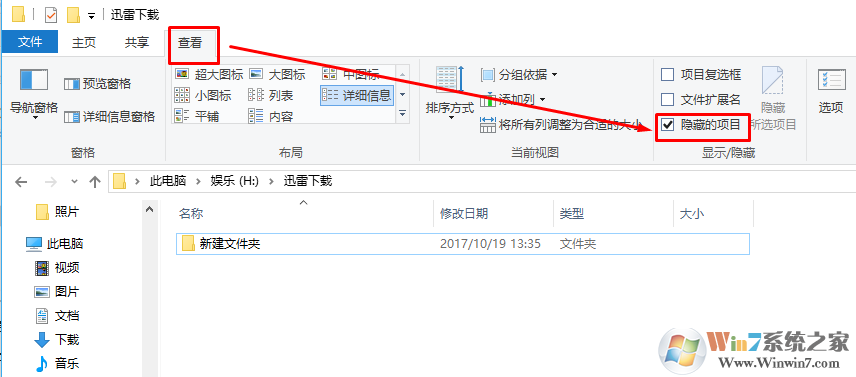 1、打開任意的文件夾,然后在查看選項卡下勾選隱藏的項目。