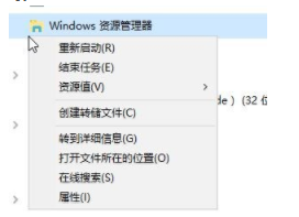 5、按下【ctrl+shift+esc】打開任務(wù)管理器,找到“Windwos 資源管理器” 單擊右鍵,選擇【重新啟動】即可。